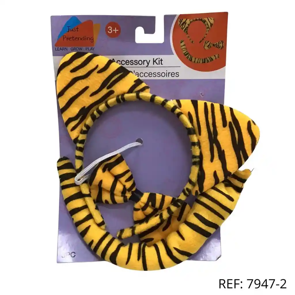 Set de tigre amarillo con orejas, moño y cola. Disfraz divertido para niños desde 3 años.
