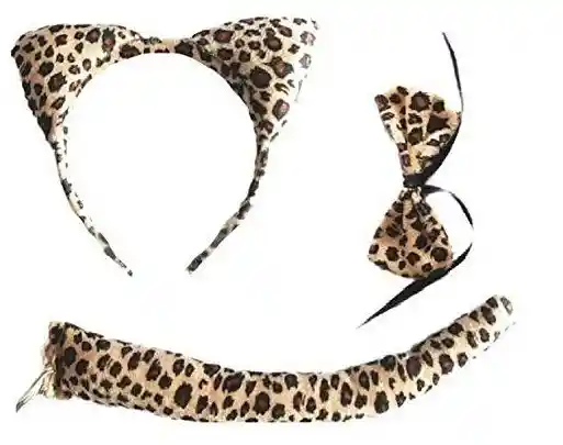 Conviértete en la más felina y divertida de la fiesta con este set de leopardo, ideal para Halloween, carnavales, fiestas temáticas o presentaciones escolares. Incluye todo lo necesario para un look completo y salvaje. ✔️ Diadema con orejas de leopardo ✔️ Corbatín a juego ✔️ Cola estilo animal print ✔️ Liviano, cómodo y fácil de usar 🎉 ¡Perfecto para crear un disfraz original, coqueto y lleno de estilo animal!