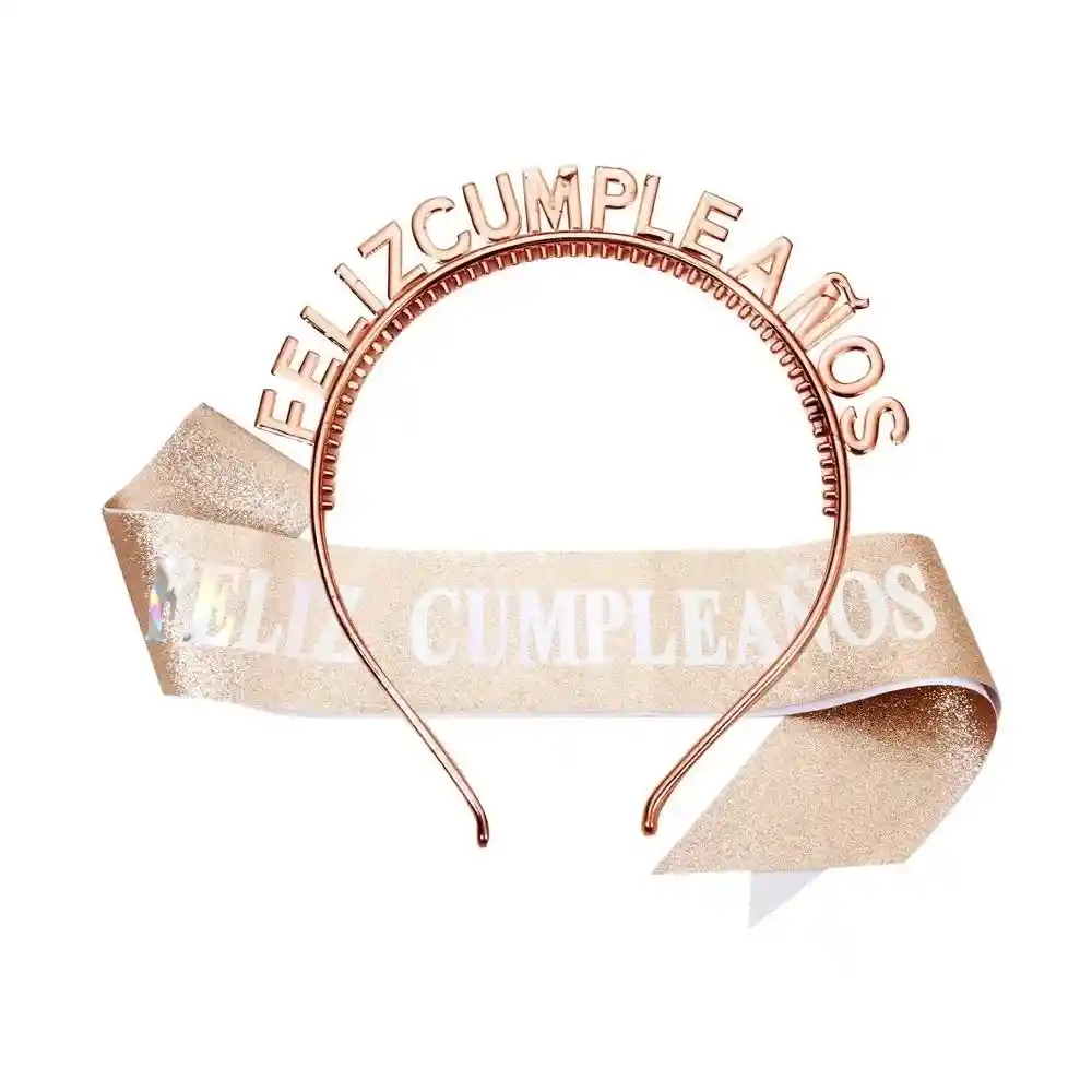 Set Diadema Vincha Con Banda Feliz Cumpleaños oro rosa