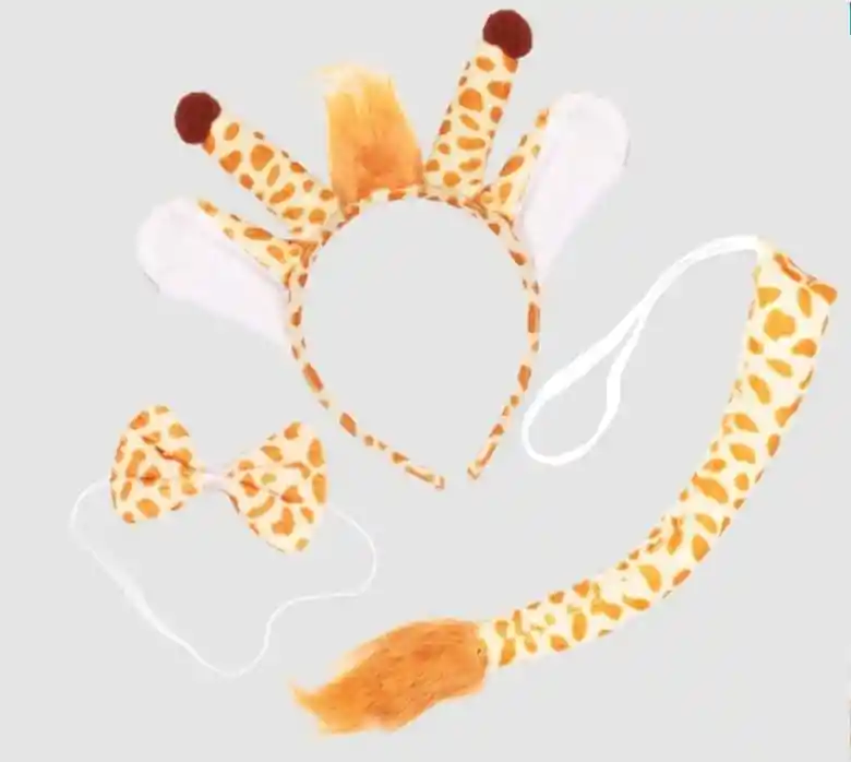 Accesorios de jirafa en foami o tela, ideal para disfraces de animales o actividades escolares.