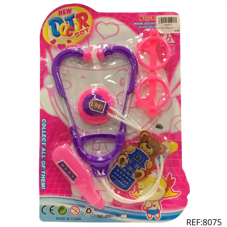 Set de doctora infantil con estetoscopio, gafas y accesorios. Ideal para juegos de roles y simulación médica.