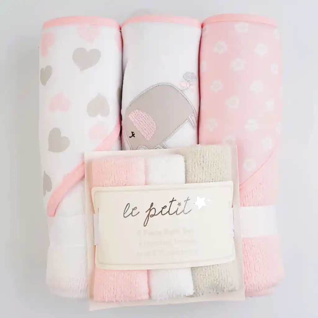 ¡A tu bebé le encantará tomar un baño! con este adorable Set de 6 piezas con 3 toallas capucha y 3 babitas de baño. Las toallas de baño tienen capucha y cuentan con diseños divertidos. Cada juego incluye 3 toallas con capucha y 3 toallitas en colores a juego. Empaquetado en una tarjeta pagable, ¡este juego es un gran regalo para un nuevo bebé o un regalo para un baby Shower! Características: El Set de 6 piezas con 3 toallas capucha y 3 babitas viene con babitas y una toalla bordada con capucha a juego ideal para el diario de tu bebé. Divertidos diseños y colores que brindarán ese plus a la hora del baño. Las piezas del Set de 6 piezas con 3 toallas capucha y 3 babitas estan hechas en 100% algodón poliéster, dándole una absorbencia y suavidad ideales para tu pequeñ@ Fabricado con 75% algodón, 25% poliéster, toalla con capucha de 76,2 x 76,2 cm y paños de 22 x 22 cm. Suave y delicada para la piel del bebé. El Set de 6 piezas con 3 toallas capucha y 3 babitas es ideal para el uso diario