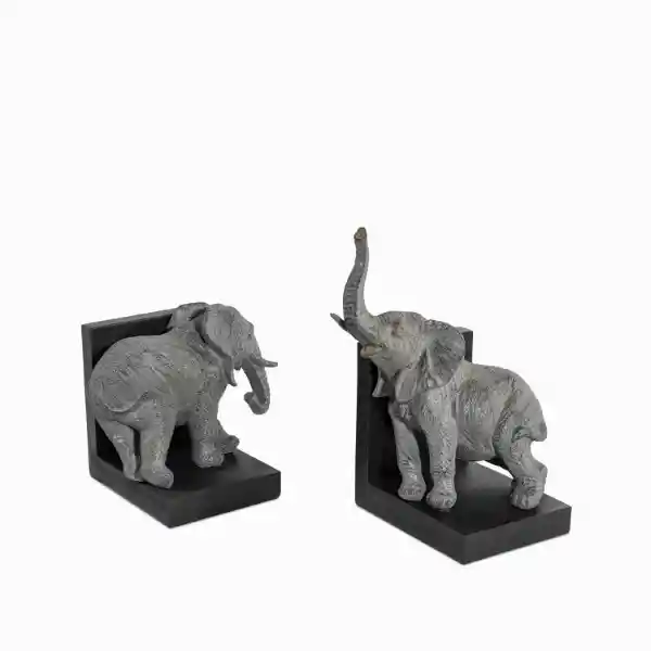 Set Contiene 2 Unidades. Sujeta Libros en Poliresina Con Diseño de Elefantes Personaliza Tus Espacios y Dale un Giro a tu Decoración Con Pequeños Detalles.