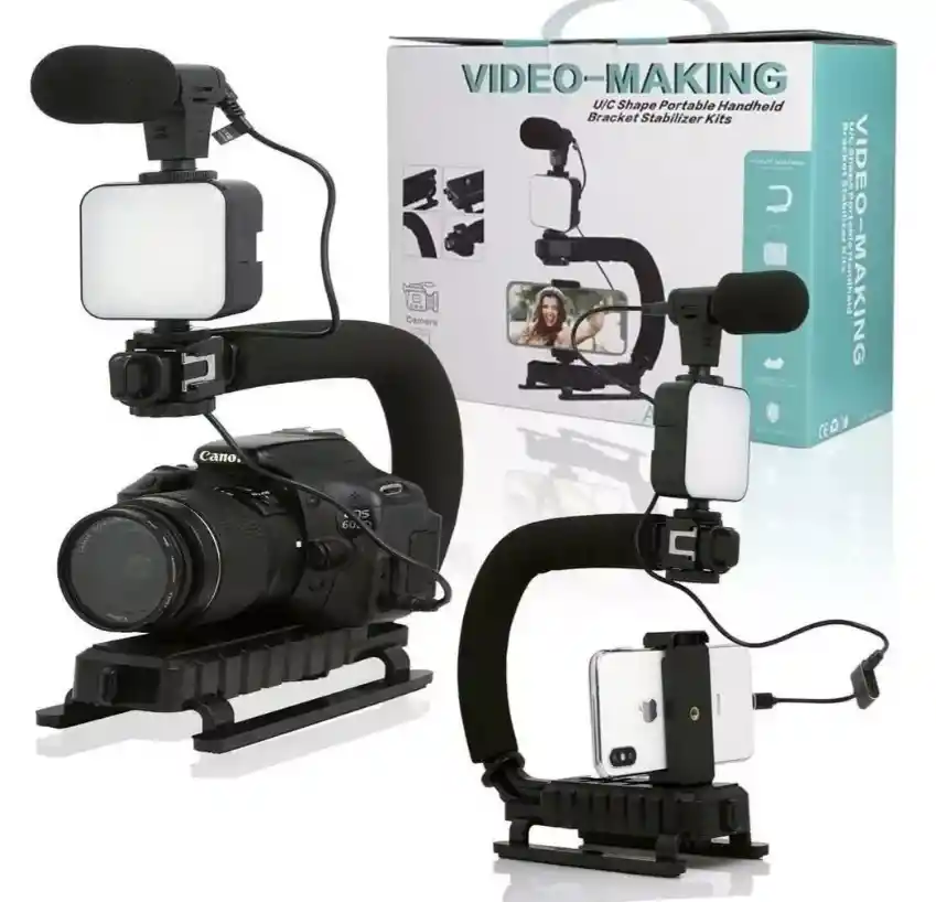 Descripción "Bienvenidos a GENUINOS SHOP Tecnología del futuro" ¡Somos expertos en los mejores artículos de tecnología, belleza y hogar con amplia trayectoria y calidad garantizada! Entregas inmediatas en la ciudad de Bogotá y envíos a Nivel Nacional. DESCRIPCION DEL PRODUCTO . Amplia aplicabilidad : El soporte SLR se puede instalar en la parte inferior, lo que puede satisfacer eficazmente las necesidades de varios reproductores de cámara. Adecuado para todas las cámaras SLR digitales, DV, cámaras pequeñas, cámaras deportivas con rosca estándar de 0,64cm / 0,3in. Manijas tapizadas en forma de U: las asas tapizadas en forma de U minimizan la presión al disparar a largas distancias sin tambalearse ni difuminarse. Los controles estables permiten que la cámara dispare de una manera que no se puede hacer con las manos desnudas. Soporte de clip de teléfono antiflojo: soporte de clip de teléfono potente y antisuelto, que se utiliza para sostener el teléfono en su lugar mientras se graba, como pantalla HD en acción 3 tipos de brillo de iluminación: mantenga presionado el botón del interruptor durante 3 segundos para encender la luz de relleno, y puede cambiar a un brillo diferente presionando él 3 tipos de brillo de iluminación. Video de acción de ángulo bajo: puede instalar una variedad de teléfonos inteligentes y cámaras SLR digitales con rosca de 1/4 de pulgada, luz LED y flash, micrófono. Y se puede grabar en video de acción de ángulo bajo Especificación: Tipo de artículo: estabilizador de cámara de video portátil Peso: aproximadamente 552 g/19.5 oz Material: ABS, metal, luz de relleno de esponja: 49 piezas LED Micrófono: micrófono pequeño, a prueba de viento y reducción de ruido Interfaz roscada: 1/4 Interfaz de rosca en pulgadas Interfaz de zapata caliente: zapata estándar para cámaras SLR Ámbito de aplicación: Cámara SLR, teléfono móvil, cámara digital, grabadora de video Características: Efecto de disparo estable, evitar temblores al disparar Modelo de batería: AA x 2 (batería no incluida) IMPORTANTE Para poder tener una buena experiencia en tu compra, te recomendamos que leas detalladamente las siguientes recomendaciones: • Lee completamente la descripción del producto. • Revisa muy bien los términos y condiciones de garantía. • Revisa muy bien que sea el producto que necesitas para evitar devoluciones. Garantía del vendedor: 30 días