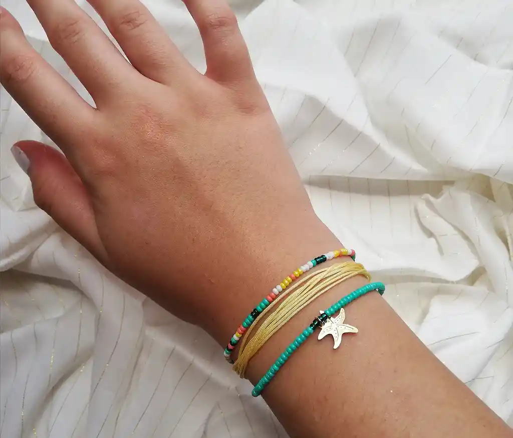 Set x 3 pulseras de colores con dije de estrella de mar. Elaboradas a mano