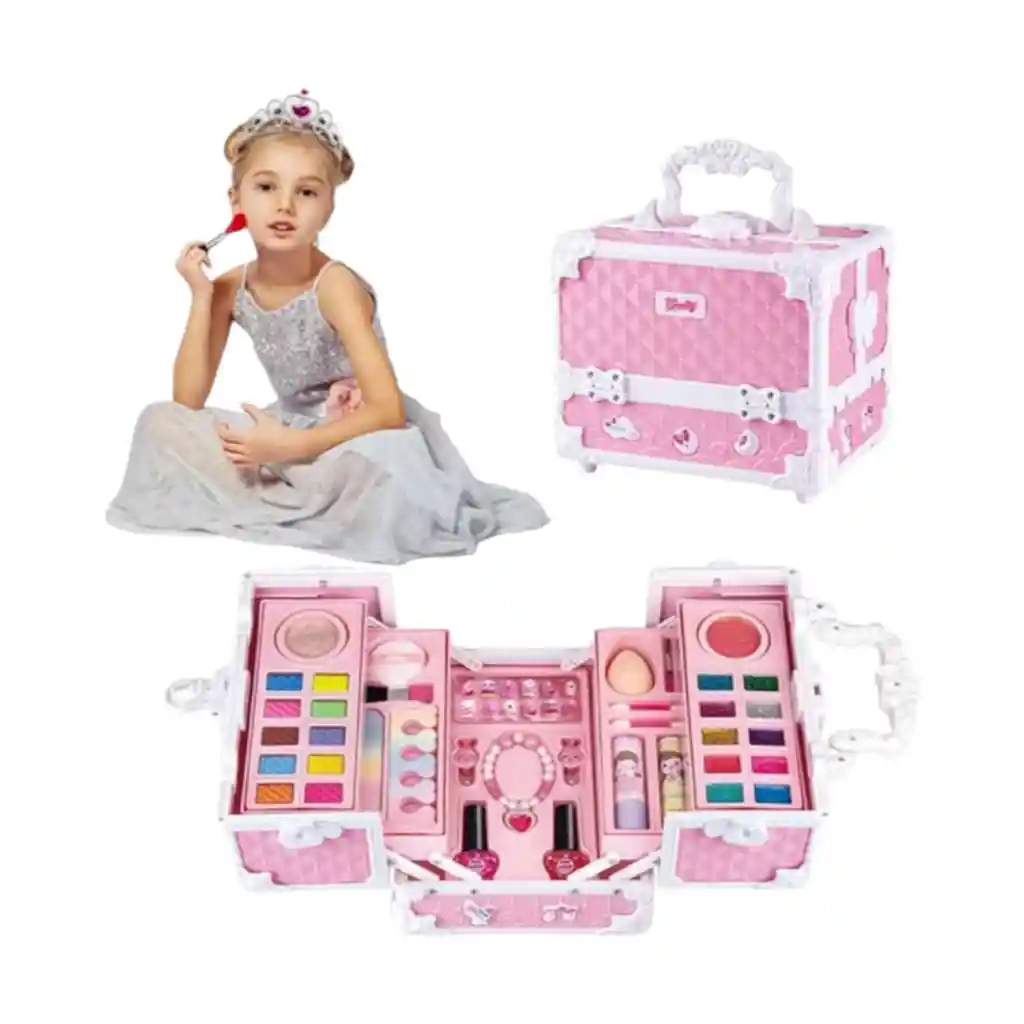 ***¡¡BIENVENIDO A ATARISTATION!!*** 1. CARACTERISTICAS DE LA COMPRA: 1.1 Esta compra incluye: - 1 Set Estuche Cofre De Maquillaje Para Niñas 1.2 Características del producto: Set de maquillaje infantil lavable, seguro y no irritante. Este set contienen diferentes accesorios con los que los niños pueden jugar para mejorar su creatividad y sus habilidades estéticas. Es facil de limpiar. Este kit de maquillaje es el juguete perfecto, podran pasar muchas horas de diversión y se probarán varios maquillajes y estilos.