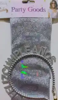 Hermoso set para cumpleaños que incluye una banda y diadema. Ideal para festejar cumpleaños especiales, sesiones de fotos, fiestas temáticas y celebraciones elegantes. Colores plateado, dorado y oro rosa, se envía según disponibilidad.