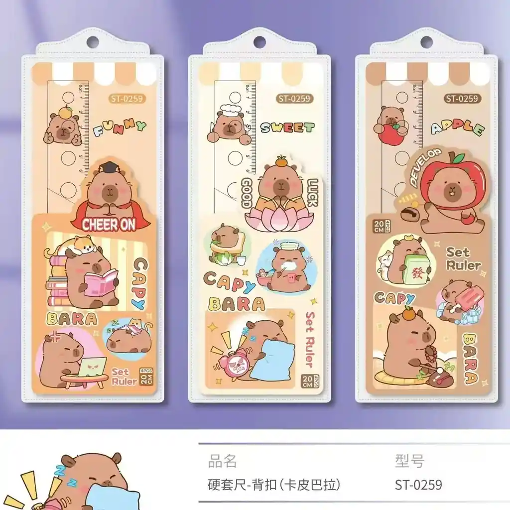 Pack con diseño que incluye un set geométrico de 4 piezas (2 escuadras, regla y transportador acrílico color transparente), en estuche plástico protector transparente de tamaño 22 x 8 cm. Portátil y perfecto para la temporada escolar.