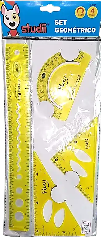 Set Geométrico - Flexible Amarilla - Regla 30 Cm. Transportador 180°, Escuadra 45° 9 Cm, Cartabón 30° 13 Cm.