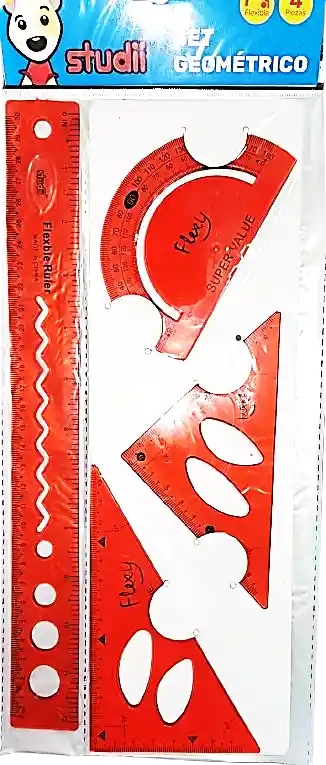 Set Geométrico - Flexible Roja - Regla 30 Cm. Transportador 180°, Escuadra 45° 9 Cm, Cartabón 30° 13 Cm.