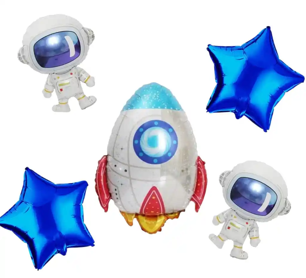 Set De Globo Cohete * 5 Pcs; contiene: 1 globo astronauta 66*54 cms, 2 Globo estrella azul rey 18", 2 globo astronauta 25*37 Cms", lo puedes utilizar para fiestas de cumpleaños, decoraciones, celebraciones, fiestas de astronauta,Happy Brthday, Medellín