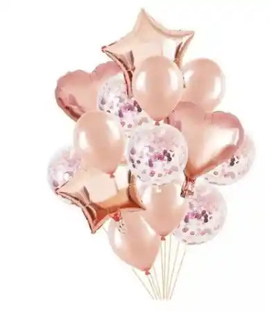 Bouquet Globos Metalizados x 14 piezas Color: oro rosa Nota: LOS GLOBOS SE ENTREGAN DESINFLADOS