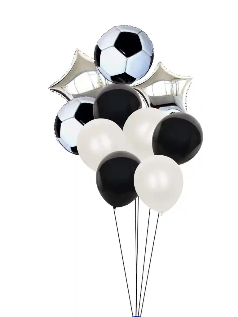 Set de 14 globos Futbol 5 globos R12 negros 5 globos R12 Blancos 2 Globos metalizado Balon 2 estrellas metalizadas plata nota: los globos se envían sin inflar Si deseas adicionar otros Articulos a tu compra puedes escribirnos, para poder ayudarte. - En ciudades fuera de Bogotá despachamos para el mismo día si compras antes de las 12AM - En Bogotá despachamos para el mismo día, si haces el pedido antes de las 2 PM recuerda q tenemos muchos productos disponibles para tener una linda celebracion