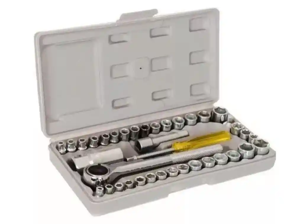 El juego de llaves de vaso de 40 piezas combinadas de 1/4 de pulgada y 3/8 de pulgada contiene tamaños de llaves de vaso métricas e imperiales que van desde 5/32 de pulgada a 3/4 de pulgada y de 4 mm a 16 mm. Completo con estuche de almacenamiento moldeado por soplado. CARACTERÍSTICAS Mango de trinquete reversible Dr. de 3/8 " Barra de extensión Dr. 75mm de 3/8 " Adaptador de 1/4 "(m) x 3/8" (h) 13/16 "Dr. x 21mm enchufe para bujía Mango giratorio de 150 mm Disco giratorio Vasos Dr. de 12 x 1/4 "Tamaño AF 5/32, 3/16, 7/32, 1/4, 9/32, 5/16, 11/32, 3/8, 13/32, 7/16 , 15/32, 1/2 " 3pz 1/4 "Dr. (8 puntos) enchufes AF tamaño 1/4, 5/16, 3/8" 3pz 3/8 "Dr. enchufes AF tamaño 9/16, 11/16, 3/4" 12pc 1/4 "Dr. enchufes de tamaño métrico: 4, 4.5, 5, 5.5, 6, 7, 8, 9, 10, 11, 12, 13 mm Vasos Dr. 3pc 3/8 "mm tamaño 14, 16 mm