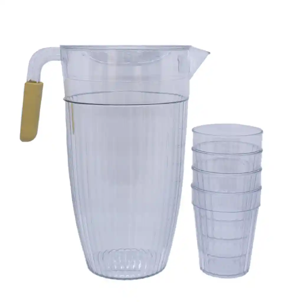 ¡Un set elegante y funcional para tus reuniones! Este set de jarra plástica con vasos para 4 personas es la solución perfecta para tus reuniones familiares o con amigos. La jarra es transparente y tiene un diseño elegante, que le dará un toque especial a tu mesa. Los vasos son de plástico resistente y libre de BPA, por lo que son seguros para toda la familia.