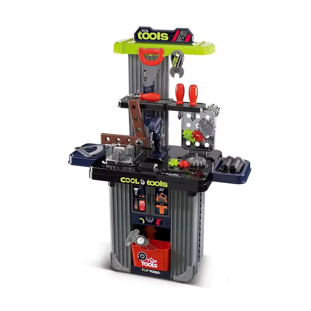 El regalo perfecto para los pequeños constructores de la casa! Despierta la imaginación y creatividad de tus hijos con este increíble Set de Herramientas "Cool Tools" 3 en 1. No es solo un juguete, es una estación de trabajo completa que pueden llevar a todas partes. ¿Por qué elegir este set? Su diseño inteligente permite tres modos de juego: Maleta de Viaje (Trolley): Con asa y ruedas para que el niño pueda transportar sus herramientas fácilmente como si fuera equipaje real. Mesa de Trabajo: Se despliega para crear una superficie cómoda para arreglar cosas al nivel del suelo. Taller Vertical: Se arma completamente para colgar herramientas y trabajar de pie.