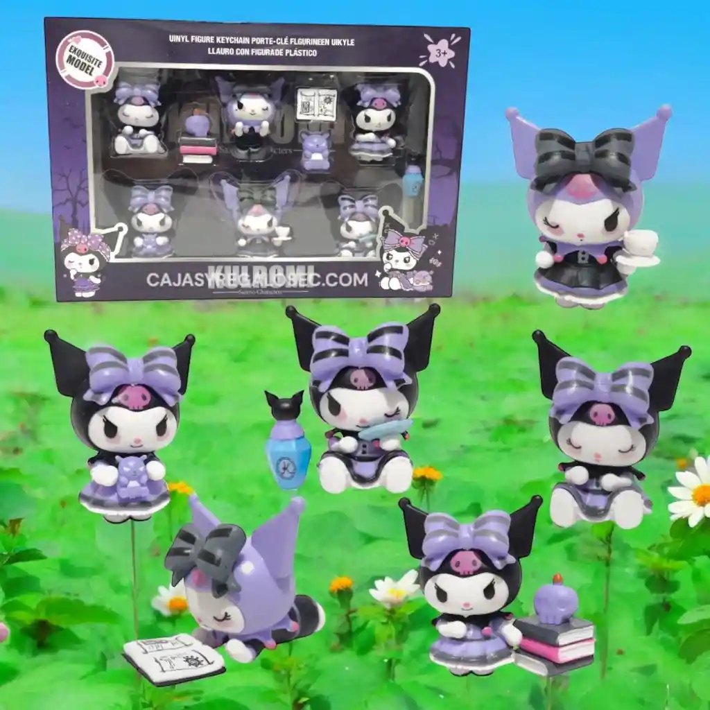 Set de figuras de Kuromi de 10 cm de alto, vienen en diferentes actividades y con accesorios para crear historias sin igual.