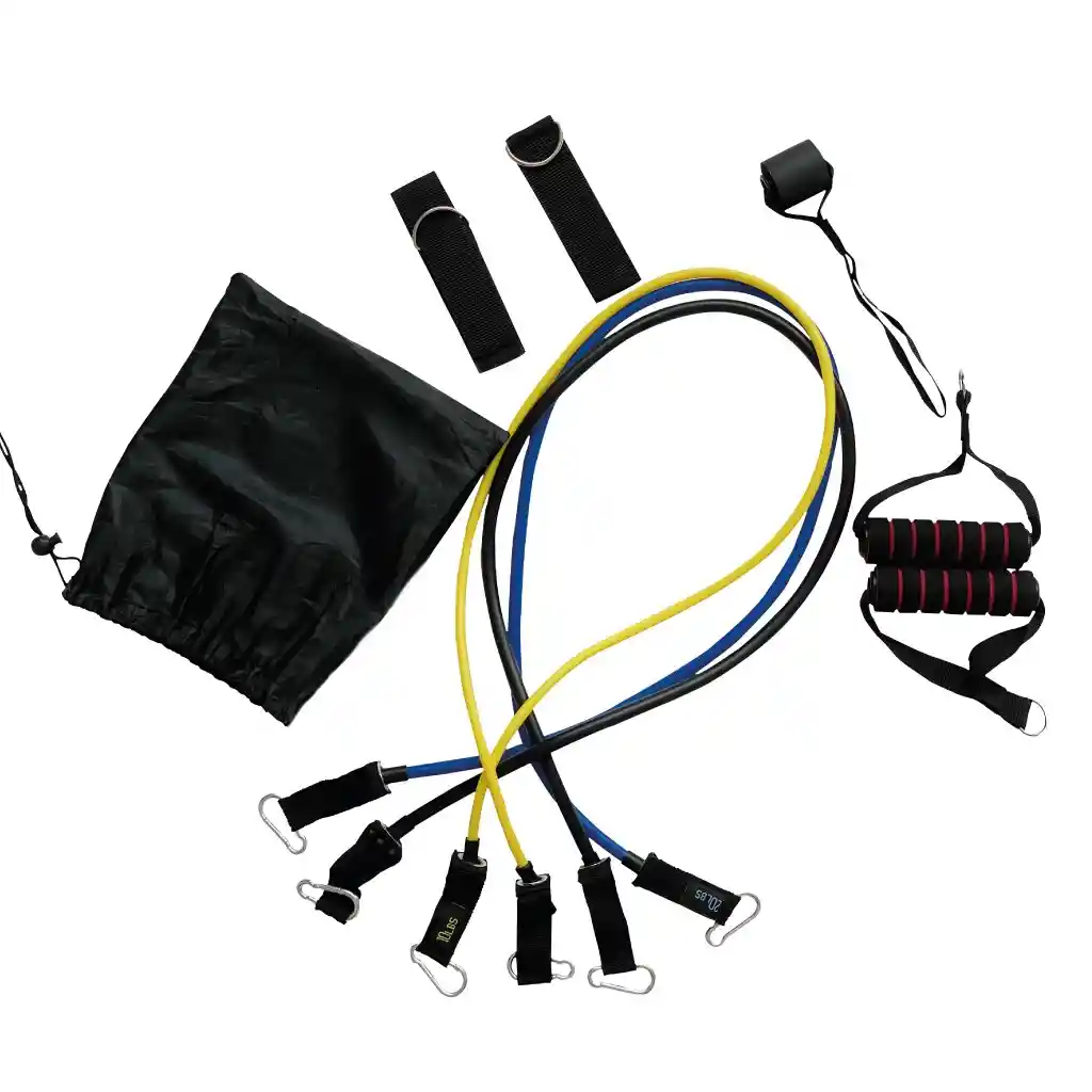Las bandas de resistencia OmniaForce están fabricadas en elastómeros de alta resistencia y durabilidad.Cuentan con tres niveles de resistencia 10, 20 y 30 lb.Combinadas alcanzan hasta 60 lb. de resistenciaGanchos de seguridad, fabricados en metal para máxima seguridad y estabilidadMangos de espuma antideslizante de alta calidad con ranuras que garantizan un excelente agarre, durabilidad y protecciónSet incluye:3 bandas de resistencia de 120 cm. de longitud en reposo.Amarilla 10 lb.Azul 20 lb.Negra 30 lb.1 anclaje para puerta2 manijas de espuma2 correas para el tobillo1 bolsa para fácil transporte y almacenamiento del setPor su diseño facilita el entrenamiento en cualquier lugar.Ayuda al fortalecimiento de:Cadera, abdomen, pecho, hombros, espalda, tríceps, bíceps y muslos.