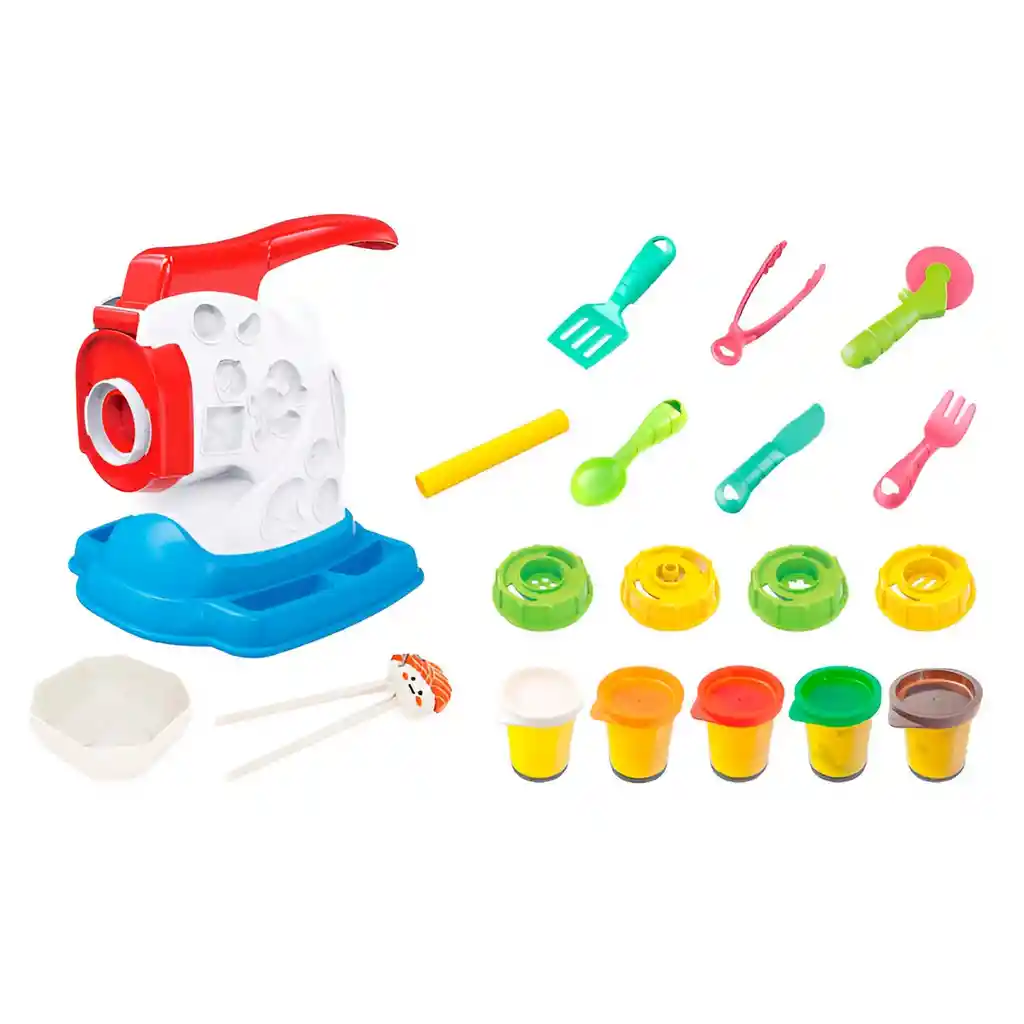 ¡Convierte tu cocina de juguete en una fábrica de diversión y creatividad con nuestro increíble Set de Masa Moldeable! Esta fantástica máquina extrusora, fácil de usar, permite a los pequeños chefs crear un sinfín de formas y texturas con la masa incluida, desde fideos hasta divertidas figuras gracias a sus moldes incorporados y tapas intercambiables. El set viene súper completo con varios botes de masa de colores vibrantes y una gran variedad de utensilios de cocina como rodillo, espátula, cortador de pizza, pinzas y hasta palillos chinos con un molde de sushi, abriendo un universo de posibilidades para preparar platillos imaginarios. ¡Es el regalo perfecto para estimular la motricidad fina, la imaginación culinaria y horas de juego sensorial y creativo! Ficha Tècnica: Dimensiones del empaque : 30 cm x 26 cm x 7 cm Materiales: Plástico ABS no toxico - Plastilina no toxico Edad recomendada: + 3 años Certificado de conformidad: SL-CS-210044 Referencia: XS1202 ** _Para defectos de fábrica o retractos: \_Por favor revise el producto apenas lo reciba y antes de usarlo. No aplican ley de retracto o defectos de fábrica luego de usar el producto. Se manejan máximo 5 días para reportar defectos de fábrica (por ejemplo, producto funciona mal, piezas faltantes, rotas, etc). Para hacer efectiva la devolución el producto debe devolverse con el empaque original, el cual debe estar en buen estado, incluir todos los documentos y las partes completas y sin daños.