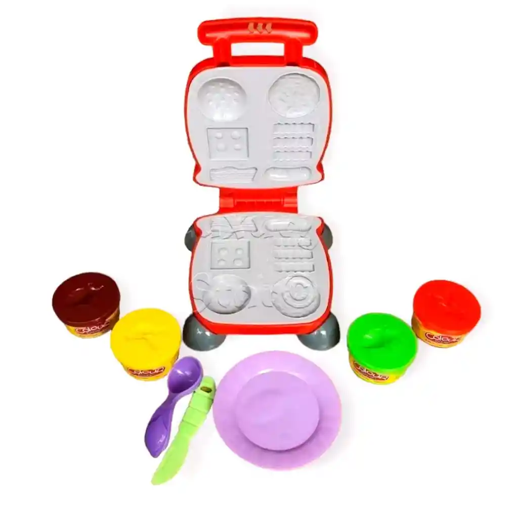 El Set Plastilina Moldeable Comida Rápida Sandwichera es el conjunto perfecto para los amantes de la comida rápida y los entusiastas de la plastilina. Con este set Colour Dough, podrás crear deliciosos y divertidos platos de comida rápida como hamburguesas, huevos, verduras y hot dogs. El set incluye 4 recipientes de plastilina en colores vibrantes, junto con una variedad de accesorios que te permitirán combinar y moldear diferentes ingredientes para crear tus comidas rápidas favoritas. Conviértete en el chef de tu propia cocina de plastilina y deja volar tu imaginación mientras exploras diferentes formas y combinaciones. Contenido de la caja: 4 Tarros de Plastilina, 1 Molde de Comidas Doble, 1 Cubierto, 1 Cuchillo y cuchara. Ficha Tècnica: Dimensiones del molde : 16 cm x 10 cm x 3 cm Materiales: Plástico ABS no toxico - Plastilina no toxico Edad recomendada: + 3 años Certificado de conformidad: SL-CS-210044 Referencia: JD1056 ** _Para defectos de fábrica o retractos: \_Por favor revise el producto apenas lo reciba y antes de usarlo. No aplican ley de retracto o defectos de fábrica luego de usar el producto. Se manejan máximo 5 días para reportar defectos de fábrica (por ejemplo, producto funciona mal, piezas faltantes, rotas, etc). Para hacer efectiva la devolución el producto debe devolverse con el empaque original, el cual debe estar en buen estado, incluir todos los documentos y las partes completas y sin daños.