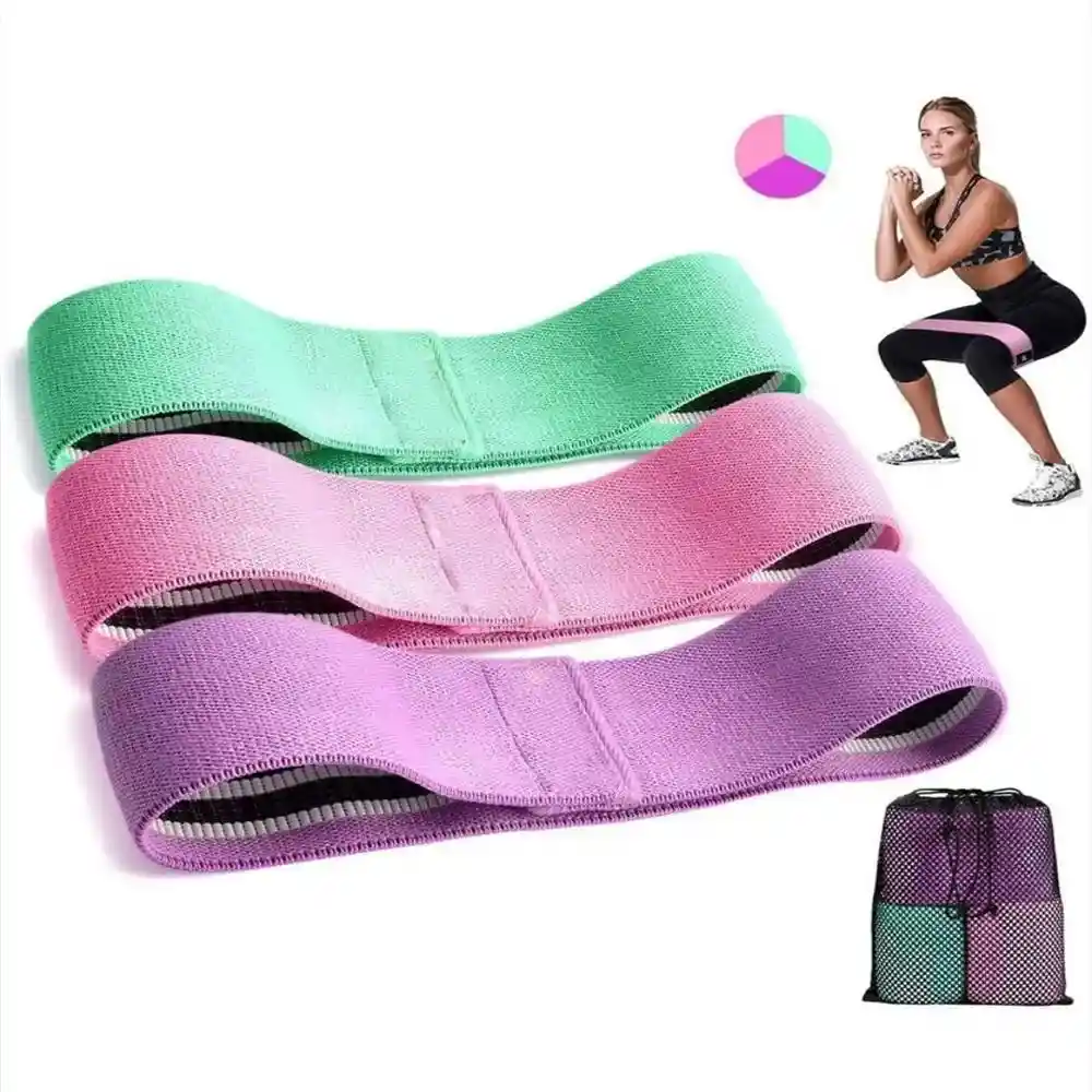 Estas bandas de ejercicio se pueden aplicar para una gama de entrenamientos, desde yoga hasta pilates hasta tu propio programa de entrenamiento en casa, diseñado para entrenamiento de glúteos y piernas, exalta la cadera y modifica las piernas, forma una hermosa figura. Las bandas de resistencia se dividen en 3 niveles diferentes de resistencia: ligero, medio y pesado. con diferentes niveles de intensidad, diferentes fortalezas le proporcionarán más flexibilidad y más opciones para su rutina de ejercicio, asegurándose de que todos sus objetivos de entrenamiento y niveles de intensidad se cumplen. Material: Tela en fibra de Poliéster Los niveles de resistencia y medidas son: AZUL (L) - 38cm - 8cm - 3mm - 120 Lb VERDE (M) - 34cm - 8cm - 3mm - 90 Lb ROSADA (S)- 30cm - 8cm - 3mm - 620Lb Ligero y portátil, lleva el entrenamiento a cualquier lugar: 3 bandas de resistencia elásticas de diseño súper ligeras y portátiles están incluidas en una bolsa de transporte portátil. Ahora puedes entrenar en cualquier momento y en cualquier lugar, en casa, el gimnasio, la oficina, un hotel, la playa, mientras viajas, etc. Ideal para ayudar en P90x, CrossFit, yoga, insolvencia, pilates, yoga caliente y entrenamientos en el cuerpo de la playa, la opción genial para deportes y fitness.