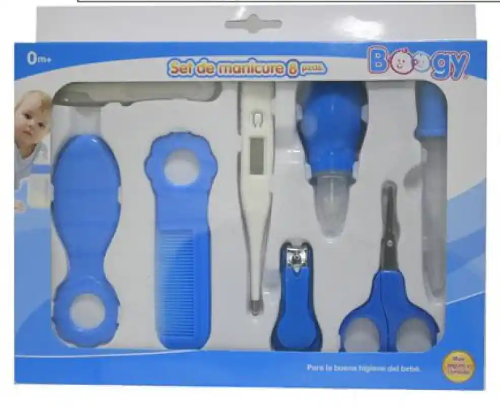 AZUL O RASADO ALTA CALIDAD !!! KIT ESTUCHE CUIDADO BEBÉ x 8 UNIDADES NIÑAS CUIDADO DE LA SALUD DESCRIPCIÓN--- Este kit de 8 piezas contiene la mayoría de los elementos esenciales que necesitas para mantener a tu bebé bien, contiene tijeras de seguridad, cepillo de pelo, peine y cortauñas, termómetro de cuerpo, ASPIRADOR NASAL, PINZA ETC . 100% nuevo y de alta calidad CARACTERÍSTICAS *Alta calidad seguro y perfecto para bebés recién nacidos práctico, compacto y ligero. *Termómetro, lectura precisa de la temperatura. *La jeringa de medicina y la cuchara de medicina ayudan a los padres a medir y administrar la dosis adecuada. *Cortauñas que protegen la piel de su bebé de ser cortada. *Con peine de cerdas suaves puedes peinar el cabello del bebé sin rozar ese cuero cabelludo sensible. *Especialmente diseñado para bebés recién nacidos. TAMAÑO (APROX): Limpiador de Nariz: 8.5 cm/3.35 \ Cepillo de pelo suave: 12 cm/4.72 \ Termómetro: 12 cm/4.72 \ Cortauñas: 5 cm/1.97 \ Pinzas: 8.5 cm/3.35 \ Tijeras de cabeza redonda: 9.8 cm/3.85 \ Peine cabello: 12 cm/4.72 \ Dispositivo de medición: 12 cm/4.72 \ PAQUETES INCLUYE: 1x limpiador de nariz con cubierta 1x Cepillo cabello suave 1x termómetro 1x Cortauñas 1x pinzas 1x Tijeras con cabeza redonda 1x peine del pelo 1x dispositivo de medición goteo (gotero