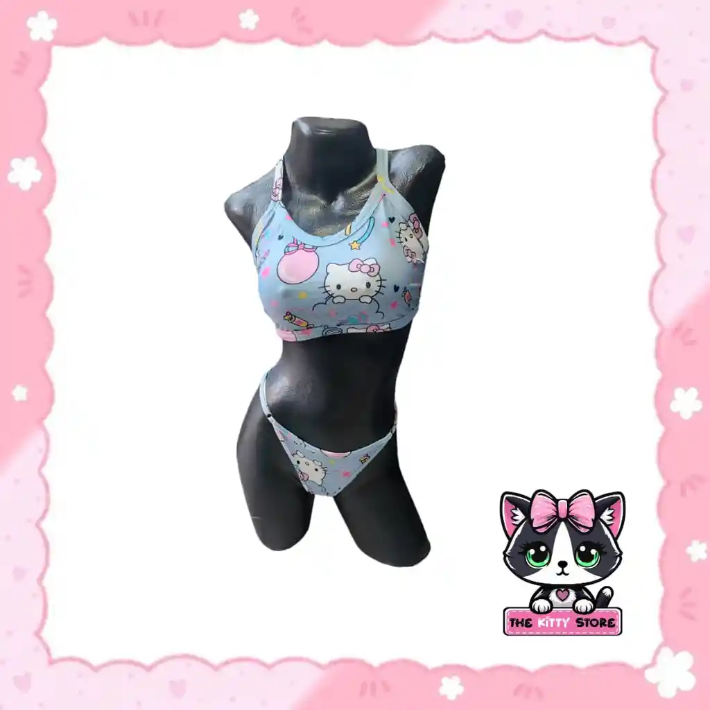 ELABORADO EN TELA PIEL DE DURAZNO, COLOR AZUL CLARO, TALLA ÚNICA, CON DISEÑO DE HELLO KITTY.