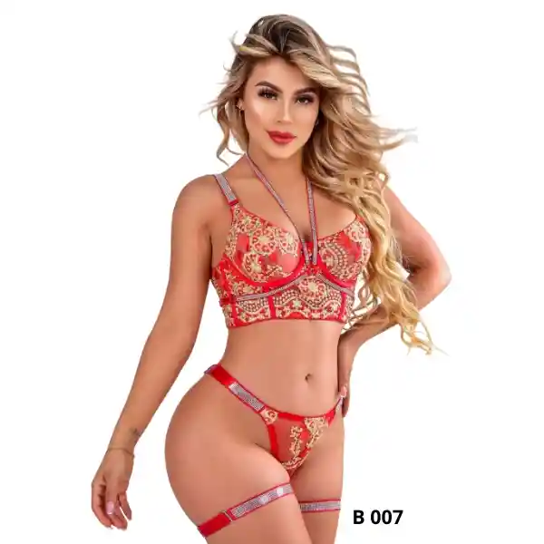Set Laia Este conjunto rojo y dorado es pura tentación convertida en arte. Su diseño combina el brillo sutil con encaje floral que acaricia la piel, mientras los detalles metálicos realzan cada curva con un toque de poder. El top tipo bralette con varilla ofrece soporte y sensualidad, y el panty con ligas laterales convierte cualquier movimiento en una declaración ardiente. Perfecto para mujeres que aman sentirse irresistibles, fuertes y absolutamente divinas. Set Laia, porque el deseo también puede brillar. Su diseño realza cada curva con un aire de poder y seducción, mientras los tirantes decorativos enmarcan el busto y las piernas con un toque provocador. Es para quien no teme destacar, que sabe que su fuego interior merece ser admirado. La noche había caído sobre la ciudad, algo ardía más que las luces de neón. Ella apareció sin hacer ruido, solo con una sonrisa peligrosa y una mirada que rompía promesas. Él pensó que tenía el control, hasta que la vio… Era una tormenta roja. No pedía permiso, tomaba lo que quería. Y esa noche, lo quería todo. No era una visita, era un secuestro de sentidos. Él cayó rendido, felizmente derrotado. Y cuando al fin pudo hablar, solo pudo decir una cosa: — ¿Dónde estuviste todo este tiempo?” Características del Set Laia Incluye Bralette Panty 2 Ligueros Cuidados Lavar a mano con agua fría y un detergente suave. Evita el uso de blanqueadores, el secado en máquina y el retorcido, ya que pueden dañar las fibras delicadas. Sécala al aire libre, preferiblemente a la sombra, y guárdala en un lugar limpio y seco para conservar su forma y suavidad. Confidencialidad: Tus pedidos se envían en una caja o sobre totalmente sellado y opaco sin ningún tipo de marcas. Para nosotros es muy importante tu privacidad. Despacho a todo Colombia