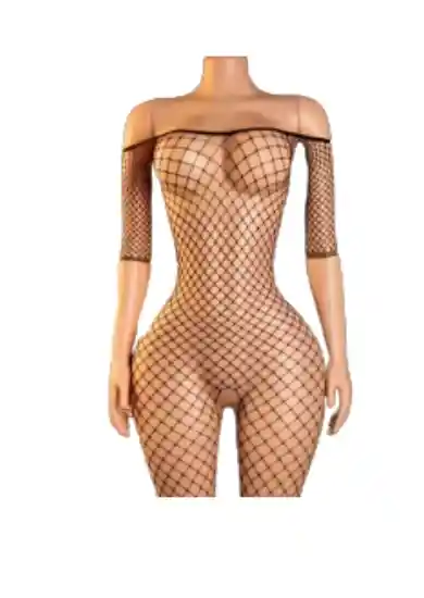🔲 Malla con transparencia total y diseño geométrico 🎀 Escote profundo con abertura frontal 🧵 Tela elástica que se adapta al cuerpo 💃 Ideal para sesiones fotográficas, noches especiales o looks de impacto Una pieza que grita poder, actitud y deseo en cada pose ✨
