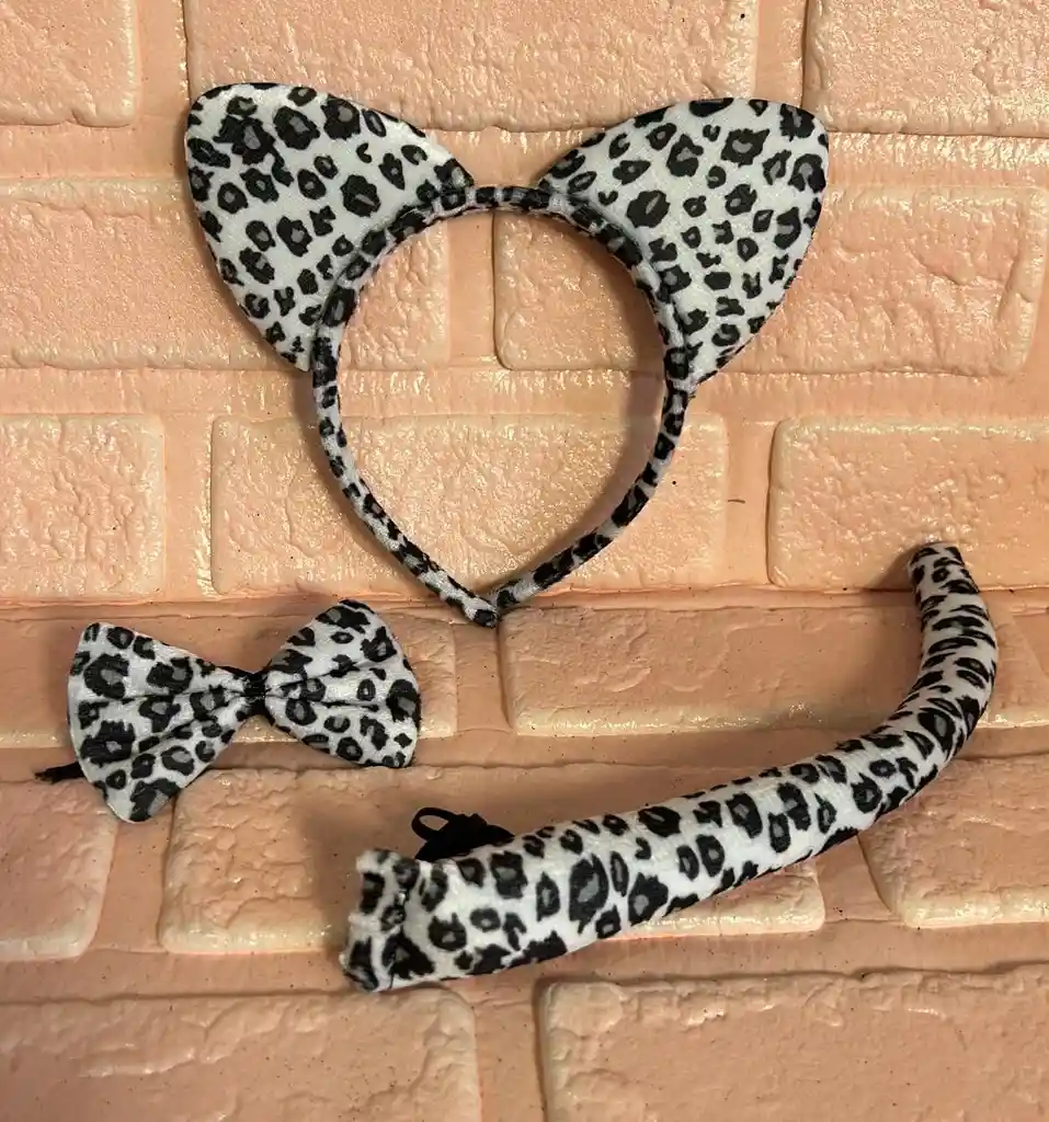 SET LEOPARDO BLANCO (( DIADEMA / CORBATIN / COLA )) HALLOWEEN COD.2278