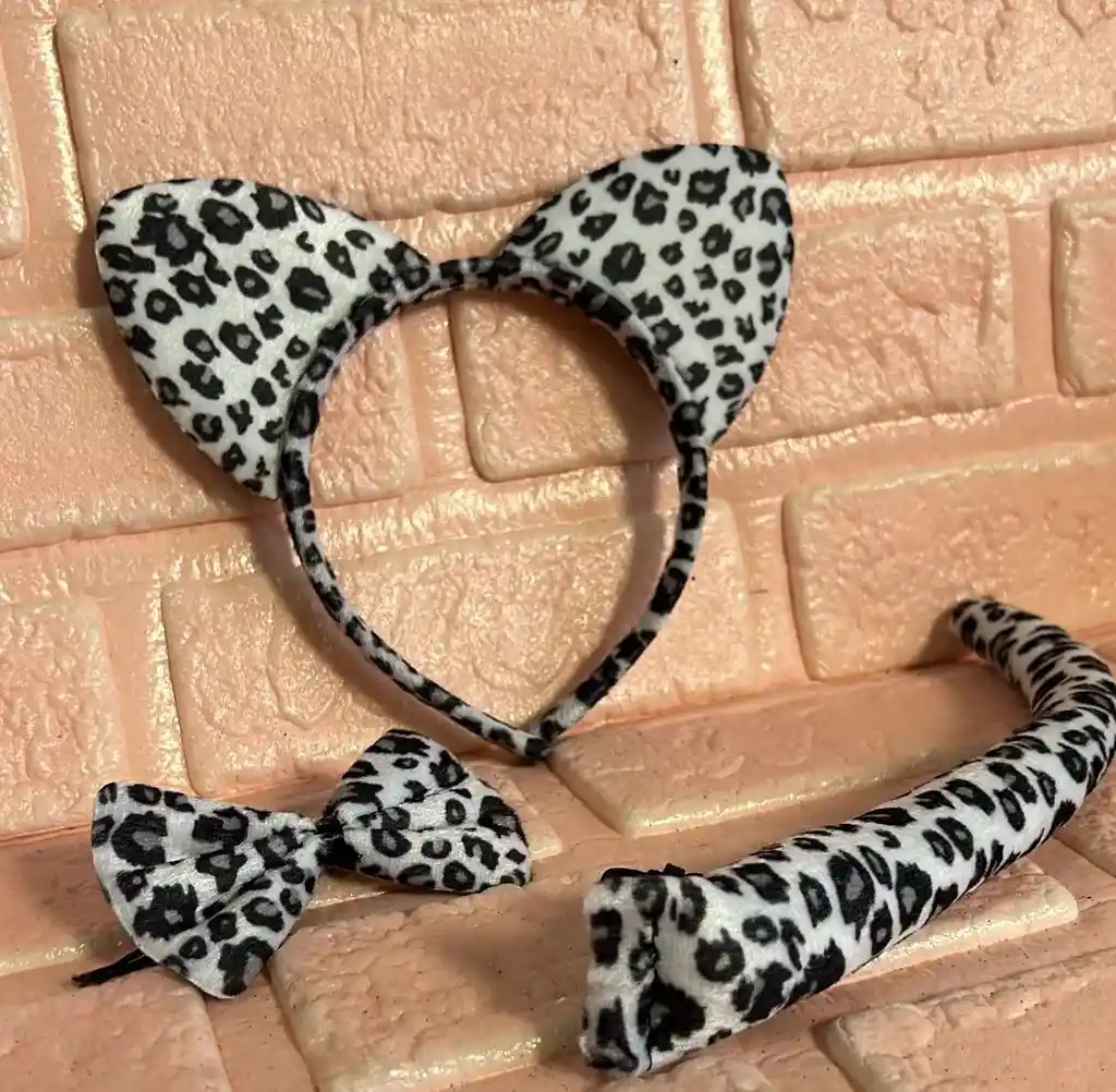SET LEOPARDO BLANCO (( DIADEMA / CORBATIN / COLA )) HALLOWEEN COD.2278