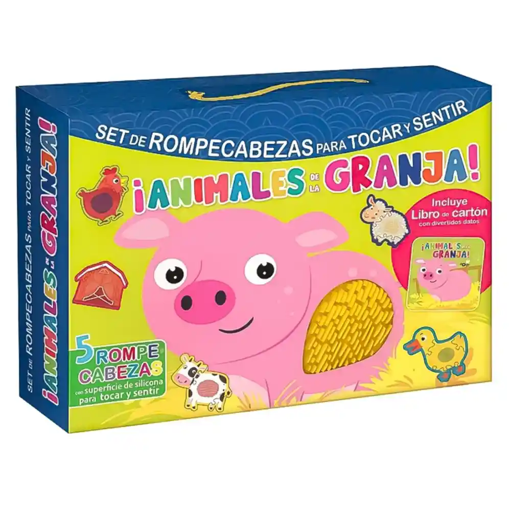 2 años + Descubre la diversión y el aprendizaje con nuestro Set de Libro y 5 Rompecabezas de la Granja. Este kit es perfecto para los pequeños exploradores, ya que combina la emoción de armar rompecabezas con la oportunidad de aprender sobre los animales de la granja. Cada rompecabezas está diseñado con una textura de silicona única, que no solo proporciona una experiencia táctil enriquecedora, sino que también estimula la atención, la curiosidad y el desarrollo de la psicomotricidad de los más pequeños. ¡Los niños se divertirán tocando y sintiendo las diferentes superficies mientras arman cada rompecabezas! Además de los rompecabezas, este set incluye un libro con textos interesantes sobre cada animal de la granja. Desde la vaca hasta el cerdo, los niños podrán aprender sobre los diferentes animales mientras se divierten con los rompecabezas. Este conjunto proporciona una experiencia educativa completa que combina el aprendizaje práctico con la lectura, lo que lo convierte en una opción ideal para estimular el desarrollo cognitivo y la creatividad de los más pequeños. Tamaño: 28 x 21 x 5cm
