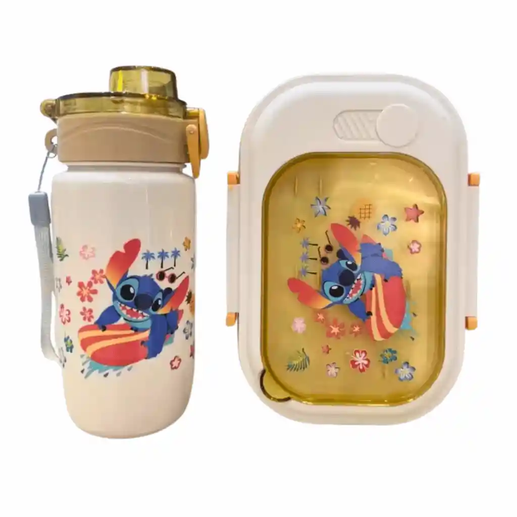 Regalo útil y de buen gusto Este set es una excelente opción cuando buscas un regalo práctico y fácil de acertar. El color beige lo hace más versátil y adecuado para distintos gustos. Stitch aporta el toque visual que conecta con los niños sin recargar el diseño. Es un regalo que se usa todos los días, no se queda guardado. Ideal para inicio de clases, cumpleaños o detalles funcionales. Un equilibrio entre utilidad y estética. Especificaciones Set infantil de termo y tupper con diseño Stitch, fabricado en plástico resistente libre de BPA, color beige, tipo set para lonchera escolar, medidas del termo 19 cm de alto x 7 cm de ancho x 7 cm de largo, medidas del tupper 19 cm de alto x 14 cm de ancho x 5.5 cm de largo, peso total aproximado 380 gramos. Incluye 1 termo infantil con tapa segura y 1 tupper hermético con diseño Stitch. Garantía 30 días por defectos de fabricación. Política de Retracto 5 días hábiles desde la recepción del producto, siempre que esté completo y sin uso. Nota Importante Si el producto llega golpeado o con piezas faltantes, repórtalo en las primeras 24 horas a la transportadora. Para aplicar la garantía, envía fotos y videos donde se evidencie el defecto.