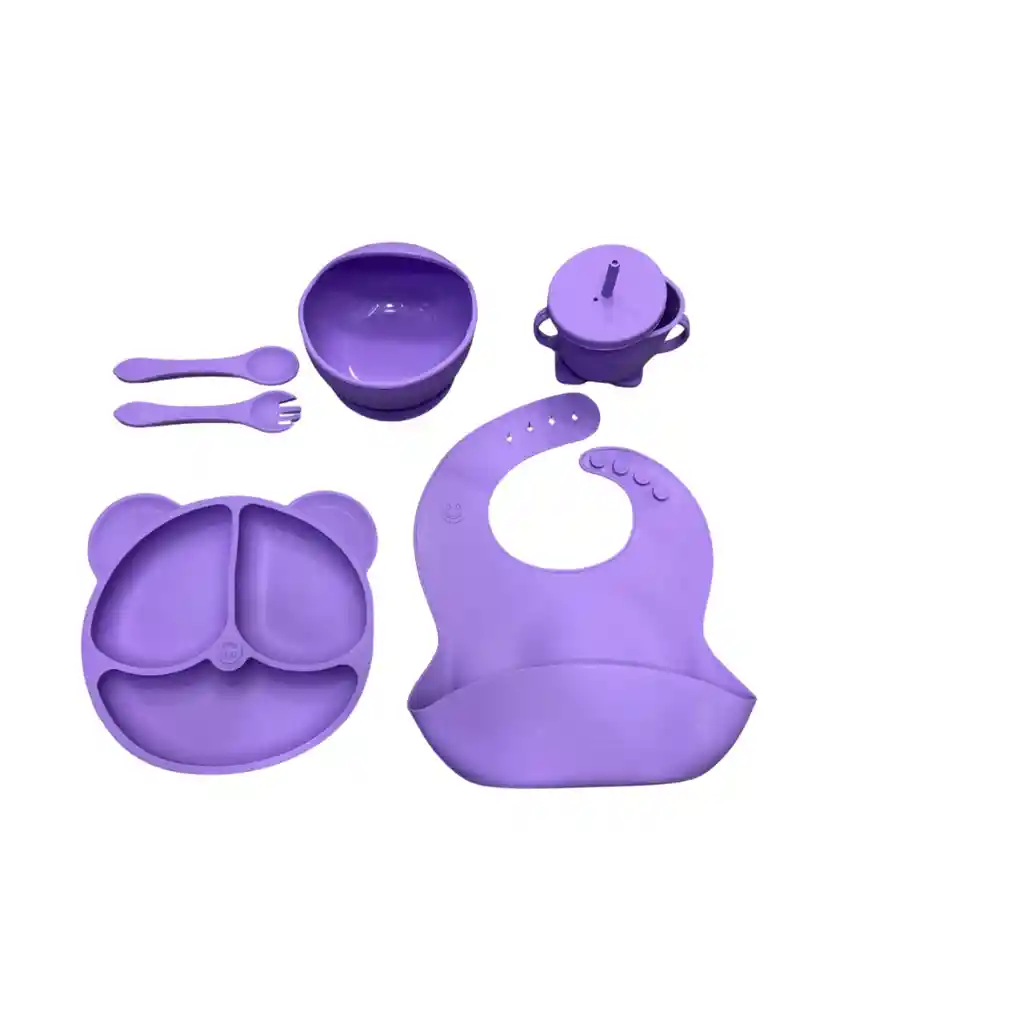 Set de loza para bebés en silicona antideslizante, 6 PCS
