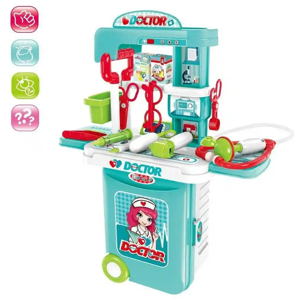 Set de maleta de doctor 3 en 1 incluye accesorios, facil de montar, transportar y almacenar. medidas: 66cmx21cmx50cm