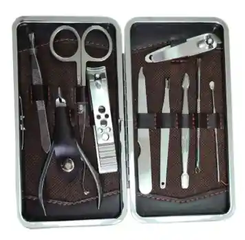 Tome el cuidado de sí mismo y hacerlo con estilo con el set manicure de aseo de acero inoxidable. Si quiere dar un regalo realmente original o simplemente para su uso personal. Este elegante set de 10 piezas incluye: Cortaúñas Pinzas Tijeras Lima de uñas Limpiador del oído Empujador de la cutícula y más