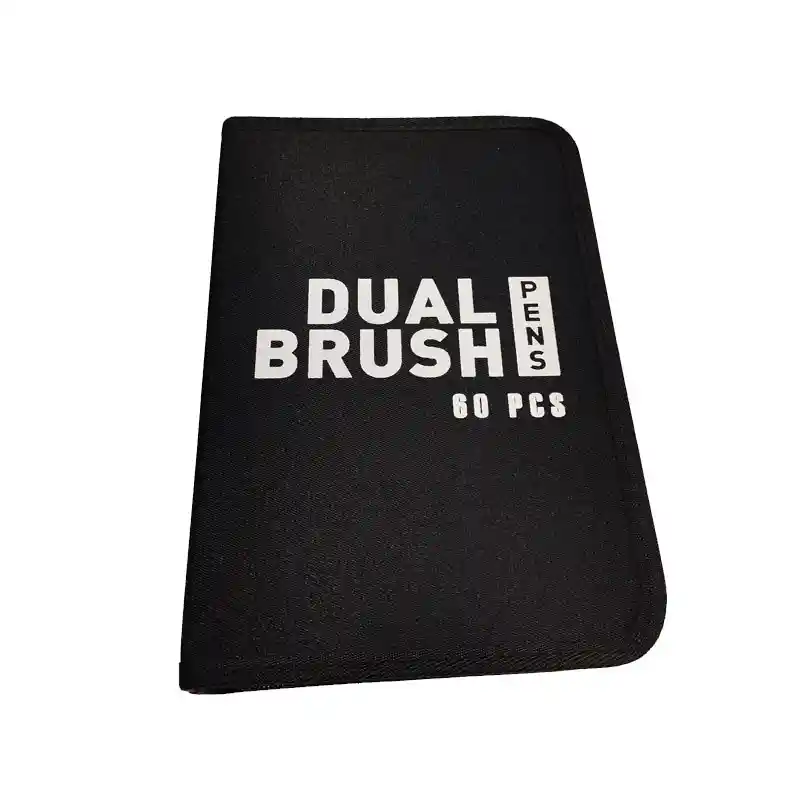 Set de 60 piezas de marcadores punta pincel y micropunta para lettering, estuche con bandejas