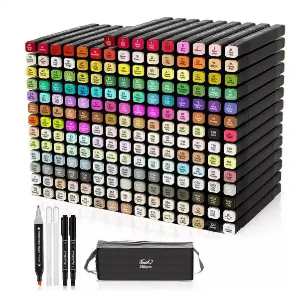Un set de marcadores de doble punta con 204 piezas es un conjunto completo de herramientas para artistas y entusiastas del arte, especialmente diseñado para ofrecer una amplia gama de colores y opciones de diseño. Estos marcadores están equipados con puntas duales: una punta fina para detalles precisos y una punta más gruesa tipo pincel o cincel para trazos más anchos y cobertura rápida. CARACTERISTICAS Doble punta: Una punta fina para detalles y una punta más gruesa tipo pincel o cincel para trazos amplios. Tinta a base de alcohol: Colores vibrantes y de secado rápido que permiten mezclar y superponer capas. Amplia gama de colores: Set completo con una gran variedad de tonos y matices. Ideal para artistas: Perfecto para ilustración, diseño gráfico, manga, caligrafía y más. GARANTIA 10 DIAS POR DEFECTO DE FABRICA. El proceso de devolución es admitido cuando el producto no fue estropeado intencionalmente por el comprador, asimismo sí se encuentra sucio, con cortes, rayones, abolladuras u alguna práctica indebida. Ofrecemos soluciones a la medida de tu requerimiento, por eso examinamos previamente cada artículo con nuestro equipo de control y calidad. Con el fin de generar buenas prácticas y altos estándares de calidad, asegurando una experiencia satisfactoria y personalizada.
