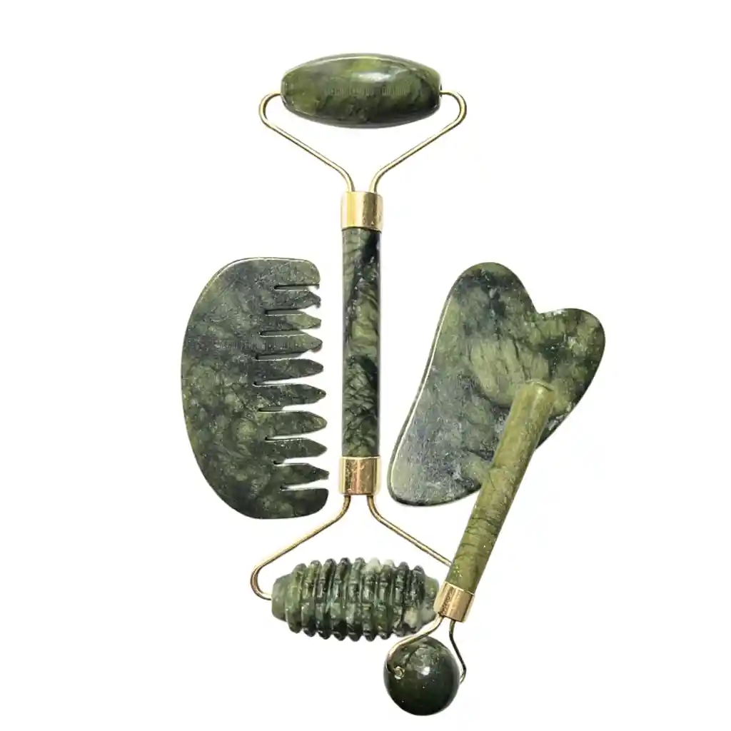 Set Masajeador Rodillo Jade 4 En 1 Herramienta Facial