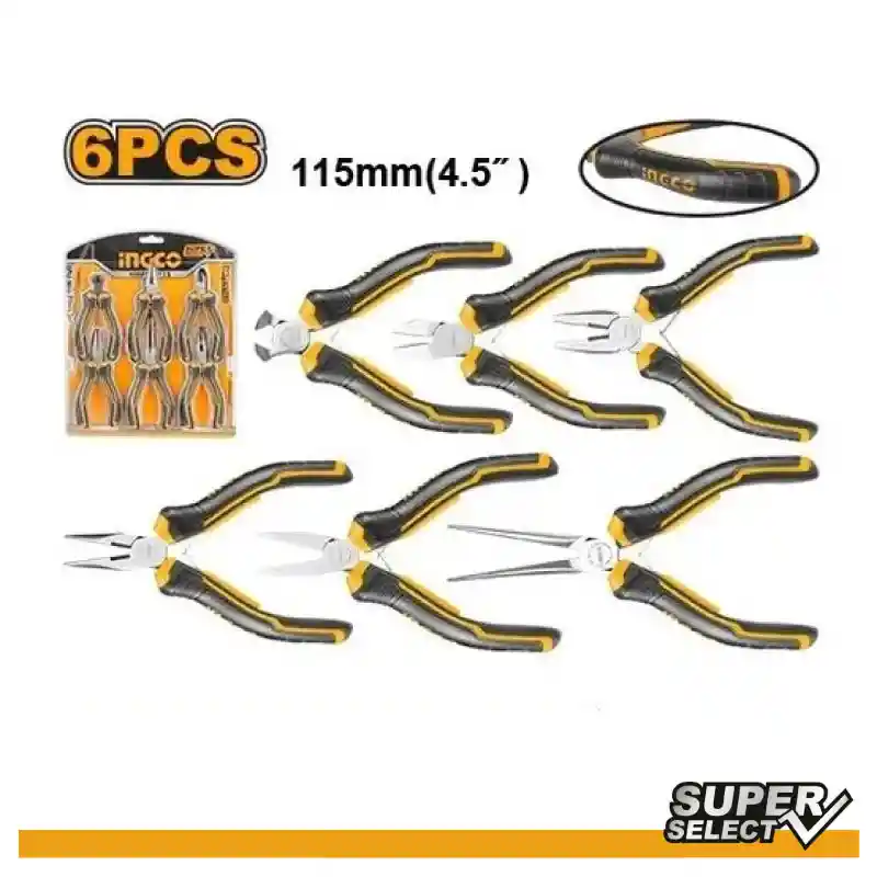 "Tienda Oficial de Repares S.A. - Todo en Ferretería SET MINIALICATES X 6 PIEZAS HMPS06115 INGCO El set HMPS06115 de INGCO te ofrece una colección de 6 minialicates de alta calidad y rendimiento. Cada alicate está diseñado para cumplir con diversas tareas de precisión. Incluye alicates de punta redonda, alicates de punta larga, alicates de corte diagonal, alicates de punta plana, alicates de punta semirredonda y alicates de punta curva. Estas herramientas son ideales para trabajos en electrónica, modelismo, joyería y más. Con mangos ergonómicos y resistentes, te brindan un agarre cómodo y seguro. Con este set de minialicates, tendrás todas las herramientas necesarias para tus proyectos de precisión. Especificaciones Técnicas: * Alicates combinados 1PCS 4.5 "" * Alicates de corte diagonal de 1PCS 4.5 "" * Alicates de corte de extremo de 1PCS 4.5 "" * Alicates de punta larga de 1PCS 4.5 "" * 1PCS 4.5 ""alicates de punta plana * 1PCS 4.5 ""Alicates de punta de aguja * Mango de dos colores * Empaquetado con tarjeta deslizante RECUERDA: * Somos una empresa comercializadora de productos en líneas de Ferretería Liviana, Tornillería, Repuestos de Automotor, Elementos para la Seguridad y Construcción, Herramientas Agrícolas, Manuales y Eléctricas. * La mayoría de todos nuestros productos tienen garantía. * Todos nuestros productos son nuevos, nunca encontrarás artículos usados o desgastados, todos están en perfectas condiciones y el envío lleva un proceso de empaque adecuado. * Todos nuestros productos están en constante proceso de prueba de calidad por parte de nuestros proveedores. * Contamos con una excelente reputación de distribuidores ferreteros en distintas partes del país. * Encuéntranos o Contáctanos en nuestras redes sociales y pagina web. "