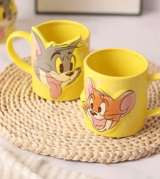 Sorprende a tu pareja o a alguien especial con este set de mugs perfecto para enamorados. Material: Cerámica. Capacidad: 300 ml. Presentación del producto: Caja . - Incluye: 1x Mug Tom. 1x Mug Jerry. *NO es apto para microondas. Importante: Debido a la diferencia de pantallas y efecto de la luz, el color real del artículo puede ser ligeramente diferente al color mostrado en las imágenes.
