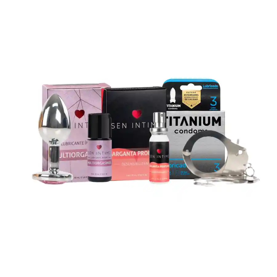 Todo lo que necesitas para llegar al éxtasis y dar rienda suelta a la pasión. Esposa a la cama a tu pareja y aprovecha para jugar con todo su cuerpo mientras el plug anal incrementa la excitación. El lubricante y el condón lubricado son el complemento perfecto para el placer máximo y el lubricante desensibilizante garganta profunda te ayudara a que la noche sea completa. Vivirás una experiencia totalmente única, placentera y excitante. Características: • Contenido: Plug Anal Romulo Talla S Camtoyz, Esposas Kratos Camtoyz, Lubricante Desensibilizante Garganta Profunda 15 Ml Sen Intimo, Lubricante Multiorgasmos 30 Ml Sen Intimo, Condones Lubricados x3 Titanium (Producto de fecha corta 10/2024) • Plug Anal: o Material: Acero inoxidable o Medidas: Longitud total: 6,9 cm • Longitud insertable: 5 cm. • Diámetro en su punto más ancho: 3 cm o Peso: 60 gr • Esposas Kratos: o Material: Acero inoxidable • Lubricante Garganta Profunda: o Desensibilizante de garganta o Minimiza el reflejo nauseoso o Agente anestésico suave o Registro Sanitario Invima: 2021DM-0024738 • Lubricante Multiorgasmos: o Mas Sensibilidad en zonas erógenas o Mejora el flujo sanguíneo o Registro Sanitario Invima: 2022DM-0024935 • Condones Lubricados: o Registro Sanitario INVIMA: 2021DM-0022827 (Producto de fecha corta 10/2024) Confidencialidad: Somos 100% discretos, tu envío llegará en una caja negra completamente envuelta. No lo pienses más y disfruta de grandes momentos.