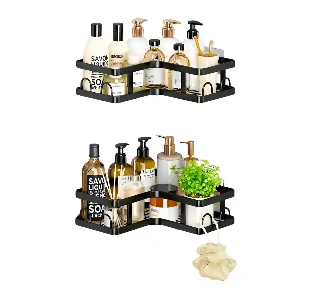 Set Organizador Baño Cocina Esquinero Adhesivo Negro 5 Pcs