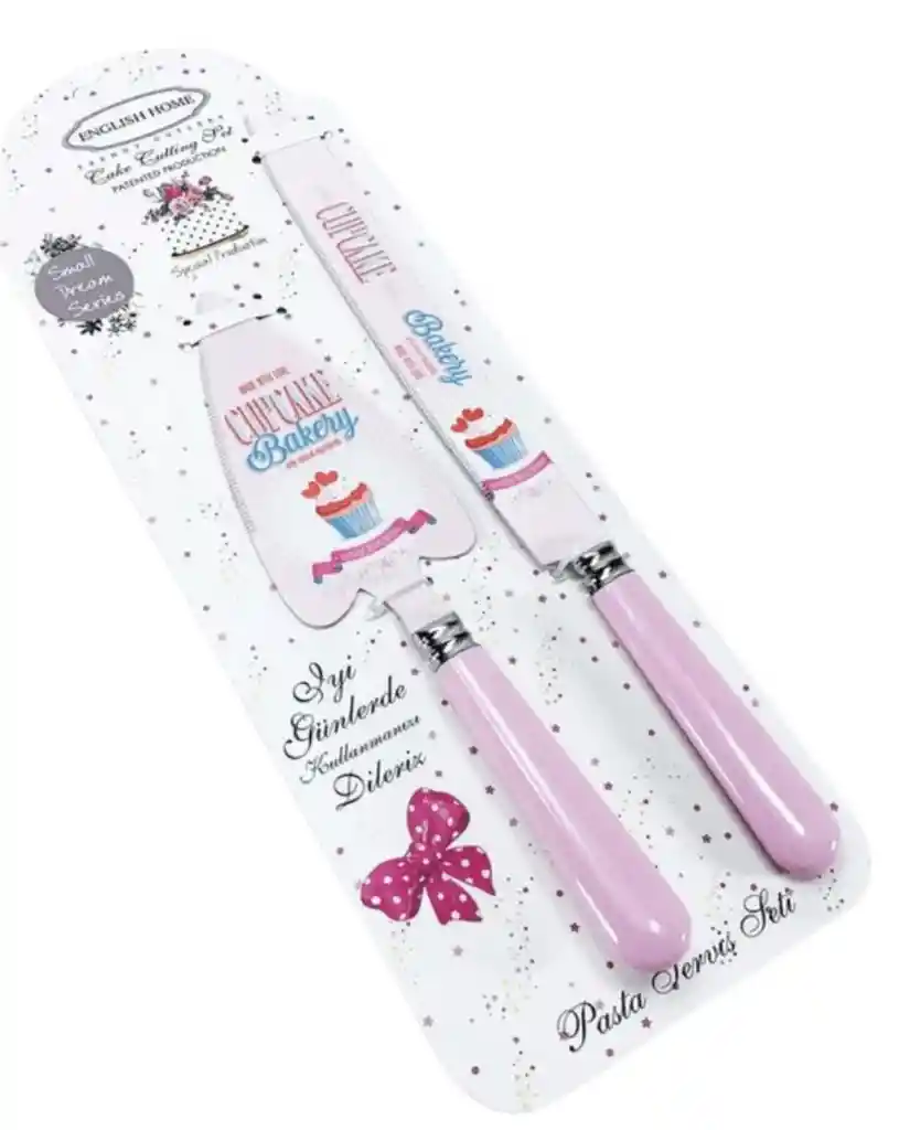 Elegante set para servir pastel de la línea English Home, compuesto por un cuchillo y una espátula con diseño “Cupcake Bakery”. Sus mangos en tono rosado pastel brindan un toque delicado y sofisticado, ideal para celebraciones, cumpleaños o reuniones especiales. Fabricado con materiales resistentes y de fácil limpieza. Perfecto para quienes aman los detalles dulces en su mesa.
