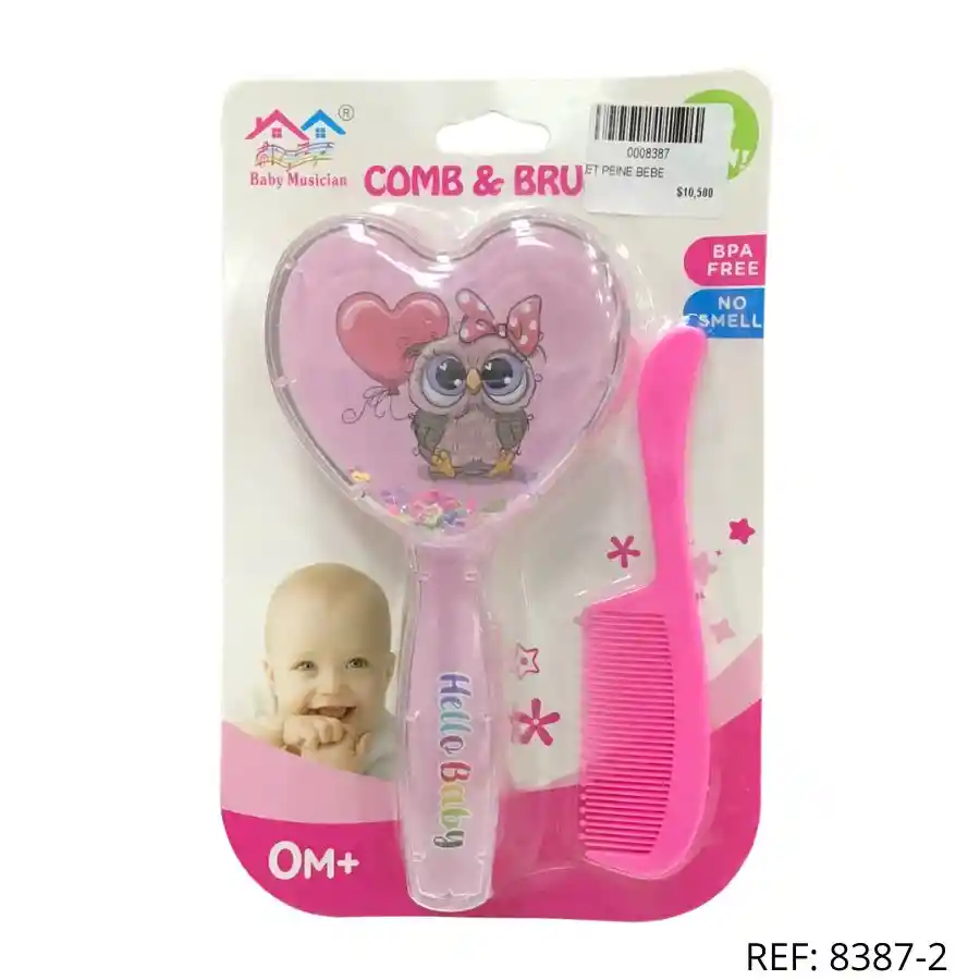 Cepillo con diseño de búho y peine. Ideal para bebés desde 0 meses.