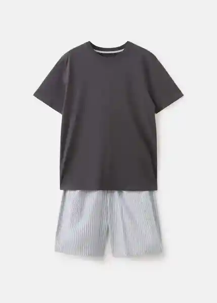 Set Contiene 2 Unidades. Camiseta de Manga Corta Cintura Elástica Con Cordón Detalle Bolsillo Pecho Camiseta y Pantalón de Pijama Pantalón Corto de Rayas Tejido 100% Algodón - 27055934_95.
