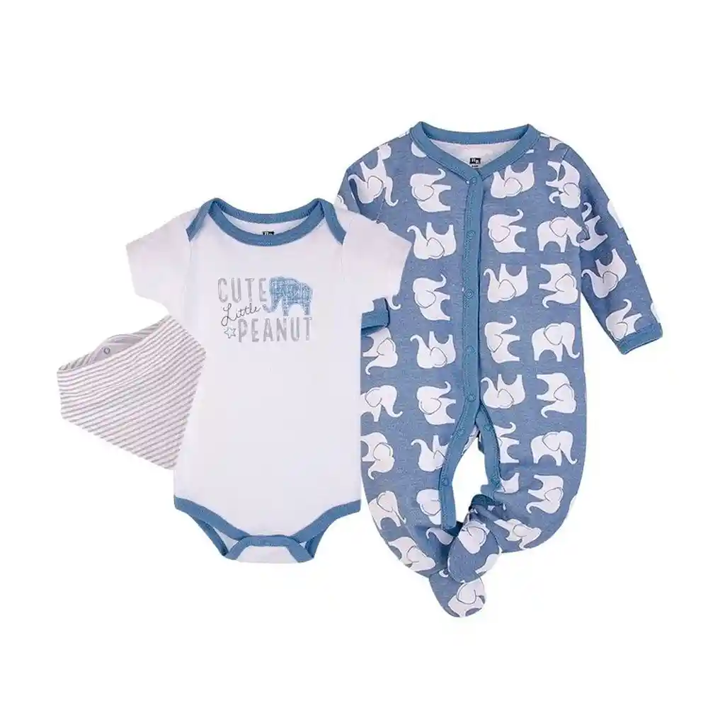 Disfruta de este cómodo set de pijamas con estampado de dinosaurios para tu bebé. Incluye mameluco manga larga con medias, mameluco manga corta y bandana, todo en tela transpirable y antialérgica - de Hudson Baby. ¡Tu bebé se mantendrá cómodo y seguro mientras duerme! Características: 100% algodón Práctico pack de 3 piezas que contiene mameluco manga larga con medias, mameluco manga corta y bandana Estampados y letras adorables. Cuello envolvente que se estira fácilmente sobre la cabeza del bebé. Broches sin níquel para cambiarlos fácilmente