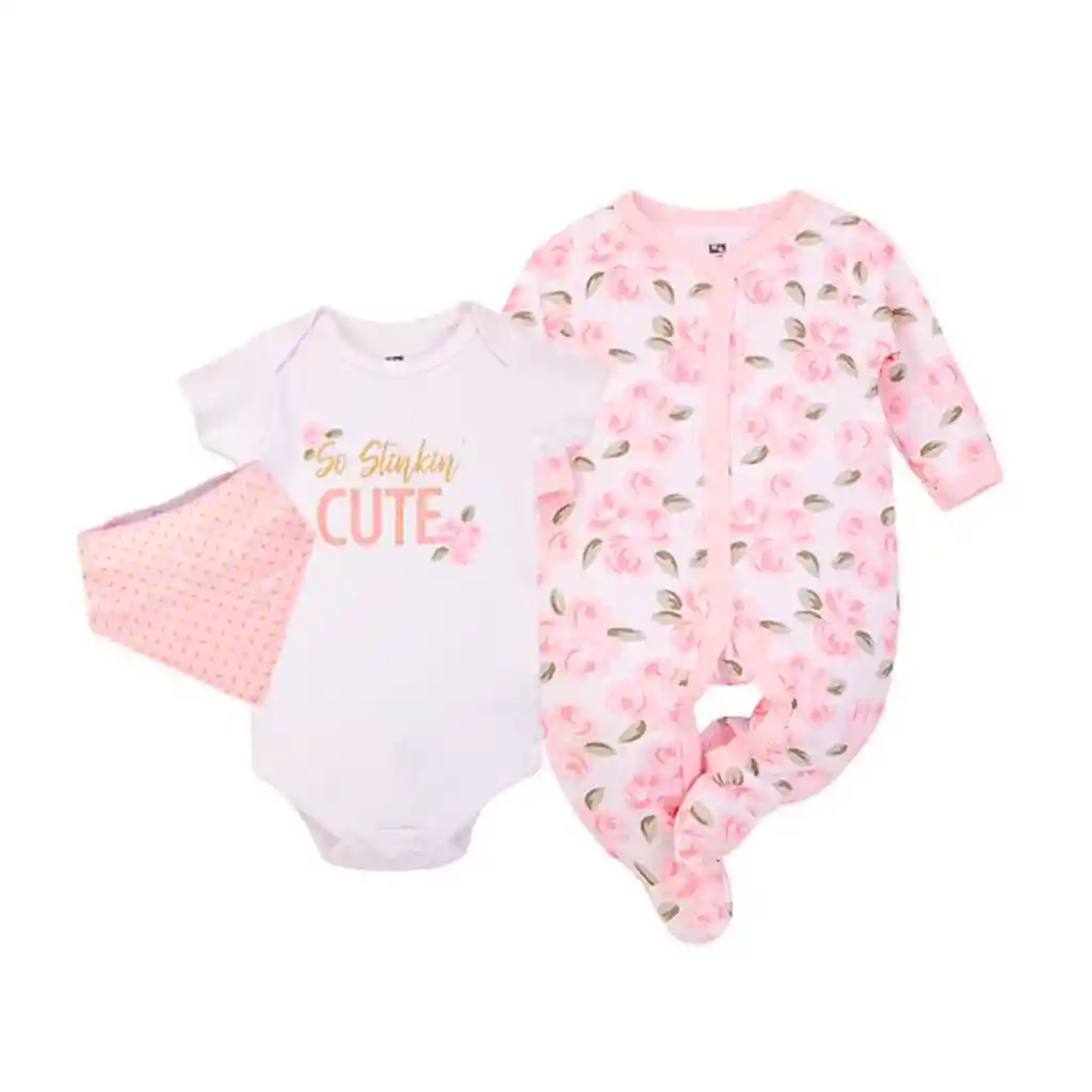 Disfruta de este cómodo set de pijamas con estampado de dinosaurios para tu bebé. Incluye mameluco manga larga con medias, mameluco manga corta y bandana, todo en tela transpirable y antialérgica - de Hudson Baby. ¡Tu bebé se mantendrá cómodo y seguro mientras duerme! Características: 100% algodón Práctico pack de 3 piezas que contiene mameluco manga larga con medias, mameluco manga corta y bandana Estampados y letras adorables. Cuello envolvente que se estira fácilmente sobre la cabeza del bebé. Broches sin níquel para cambiarlos fácilmente