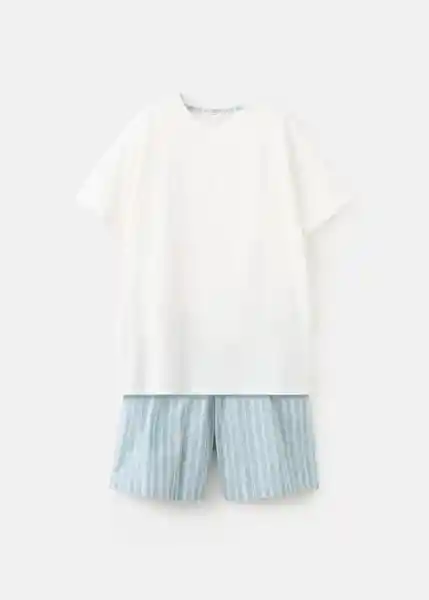 Set Contiene 2 Unidades. Camiseta de Manga Corta Cintura Elástica Con Cordón Detalle Bolsillo Pecho Camiseta y Pantalón de Pijama Pantalón Corto de Rayas Tejido 100% Algodón - 27055933_43.