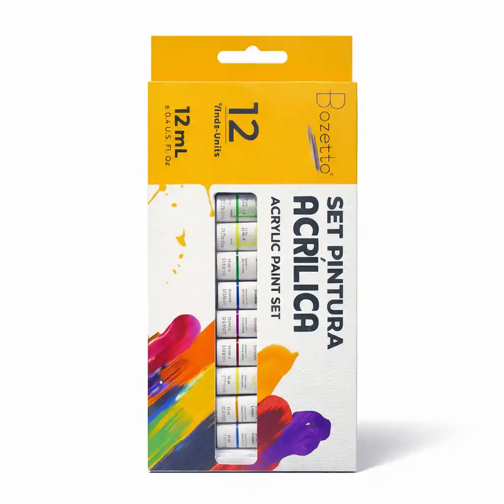 Set de pintura acrilica Contiene los siguientes colores: Blanco de titanio Amarillo limón Amarillo ocre Rojo bermellón Rojo escarlata Verde esmeralda Azul phthalo Azul ultramar Verde vejiga Sombra tostada Siena tostada Negro bujia